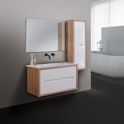 80 ארון קומו פורניר 80 , כיור משטח ומראה מרחפת