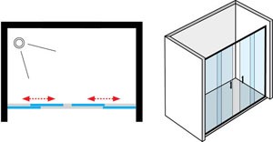פרופיל ניקל בעל מסגרת היקפית, 2 קירות קבועים ו-2 דלתות הזזה עם מסגרת